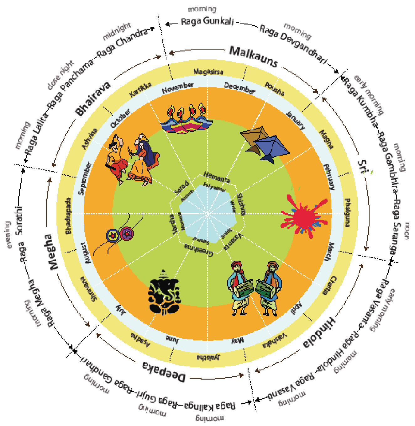 Unfold the Kangra Ragamala paintings in terms of day timings, months, seasons, festivals, Ragas and Ragnis