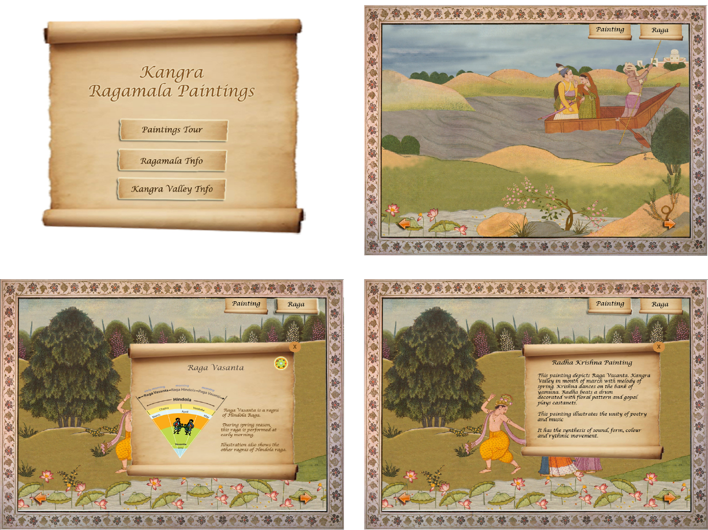 A project exploring and interpreting the qualities of the traditional art form of Indian miniature paintings into a new visual framework. Portrayed Kangra Ragamala paintings into a new visual framework. Concepts of Indian raga music, character motion and info-graphics were integrated to enhance the user experience.