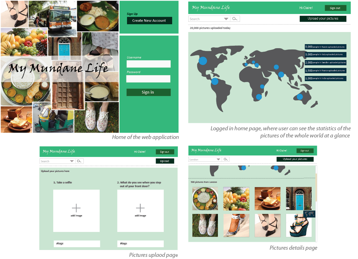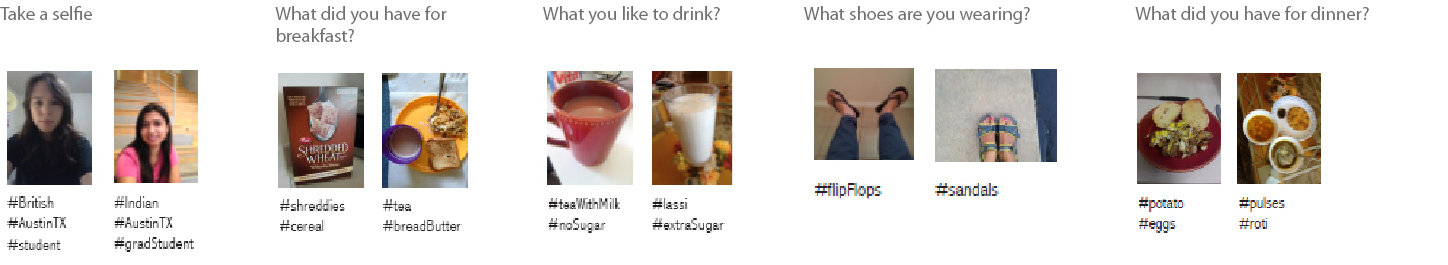 A web portal having 5 questions upload everyday about our daily life. Users will answer them by uploading pictures and adding tags. Users can also search for similarities and explore differences.