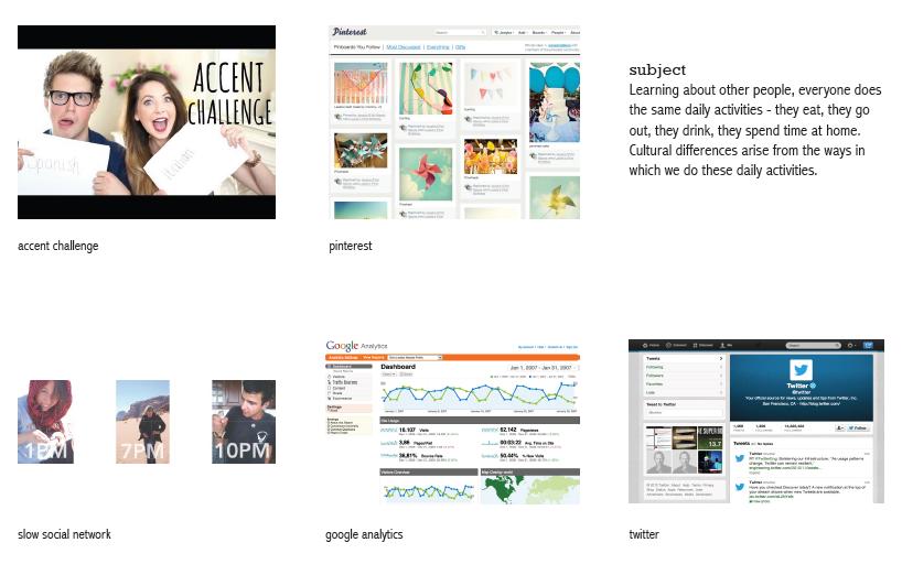 • Studied various web portals which influenced our idea like accent challenge, google analytics, twitter, slow social network, pinterest etc.